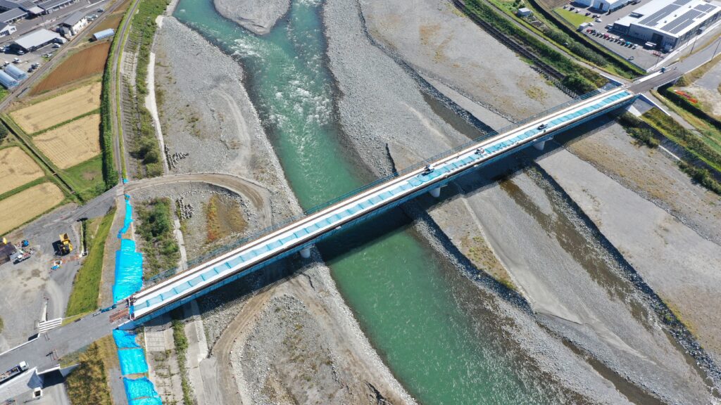 鋼製排水溝は橋面上の雨水を集めて流す役割があります。
